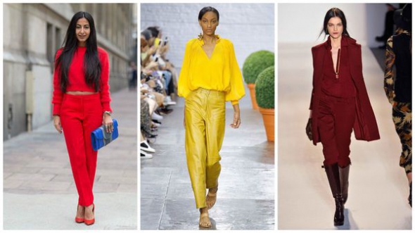 Монолук. Образ в однотонній кольоровій палітрі візуально витягує силует. Таке поєднання завжди привертає увагу. Гарним акцентом можуть бути аксесуари.