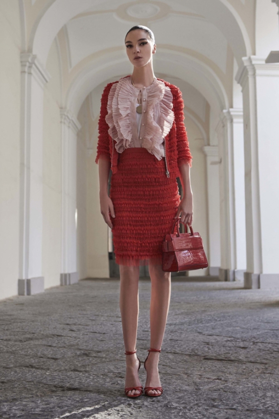 Модний дім Givenchy представив нову круїзну колекцію. Дизайнер Ріккардо Тиші описав моделі суперечливим словосполученням "романтичні скінхеди". Він поєднав грайливі волани з масивним взуттям, об'ємним чорним одягом та денімом.