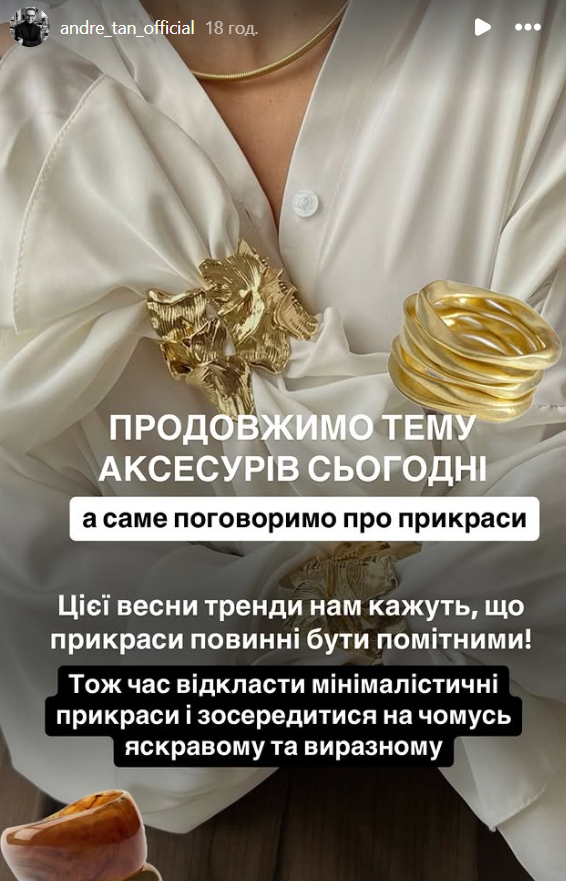 У своєму Instagram стиліст назвав трендові аксесуари й наголосив, що варто зосередитися на чомусь яскравому та виразному.