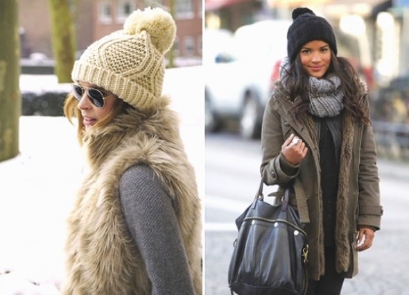 У якості теплого аксесуару можна одягати шарфи з хутра або шапки з помпонами.