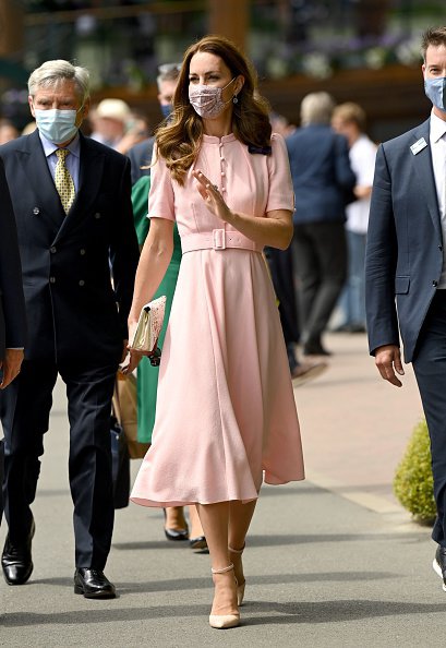 Дружина британського принца Вільяма Кейт Міддлтон 11 липня відвідала фінал тенісного турніру Вімблдон-2021 в елегантній пастельно-рожевій сукні довжини міді Beulah London.