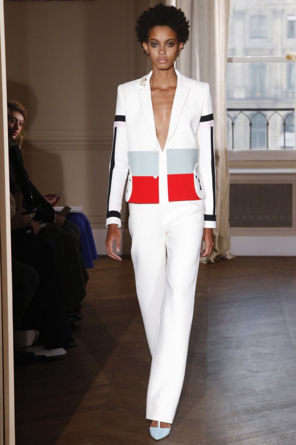 Повсякденні варіанти виконані в однотонних кольорах та вільних силуетах. У брючних костюмах акцент зробили на малюнки частин тіла. Жакети середньої довжини, прямого силуету, з заниженим коміром.