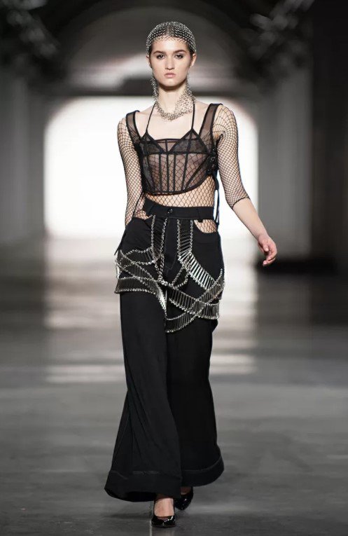 "Тема колекції відображена у філігранному декорі зі шпильок, кілець і дзеркальних пластин, які роблять образи загадковішими. Модельний ряд: oversize-костюми прямого силуету, брюки-кльош, гібриди сорочки і футболки, костюми напівприлеглого силуету з оформленням плеча в дусі 1940-х, тренчі з заниженою лінією плеча прямого силуету, корсети", - описали нову колекцію на сайті Ukrainian Fashion Week No Season 2021.