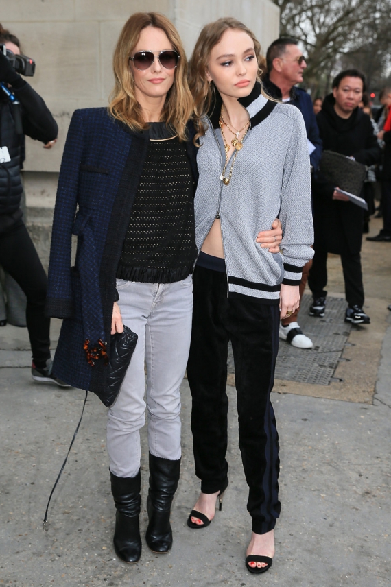 У першому ряду показу папараці помітили головну музу автора - Лілі-Роуз Депп. 17-річна модель прийшла на шоу разом з мамою Ванессою Параді. Також першими оцінити колекцію прийшли Анна Вінтур, Каролін де Мегре, Фаррелл Вільямс, Рита Ора, Марі-Анж Каста, сестра Летиції Касти.