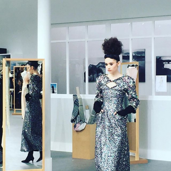 Вечірні вбрання прикрасили яскравим декором та розрізаними рукавами.