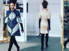 Кольори колекції — відтінки чорного, сріблястого, рожевого, синього та білого. Аксесуарами стали довгі рукава з щільної тканини, прикрашені драпіровкою. Взуття — довгі чорні чоботи на невеликих підборах.