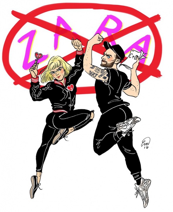 "Наші авторські роботи копіюють, роблячи з них значки, нашивки та принти на одязі. Хоча деякі з цих зображень є прості форми або іконки. Очевидно, що Zara їх копіює з усіма деталями. Систематична крадіжка робіт незалежних художників - це усвідомлений вибір Zara, Bershka, Pull & Bear, Stradivarius та всього концерну Inditex", - пише Адам Джей Курц.