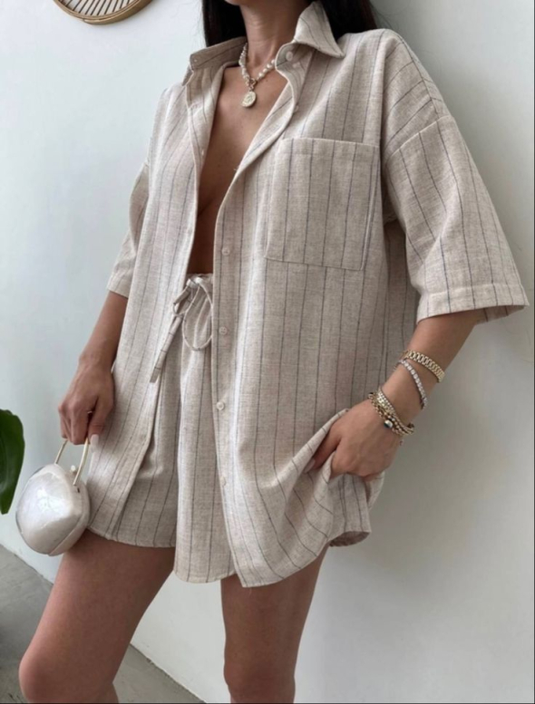 Шорти і жакет - чудове поєднання для спекотних літніх днів. У цьому костюмі ви будете почуватися максимально комфортно і впевнено. Комбінуйте його з базовим топом, сандалями та капелюхом.