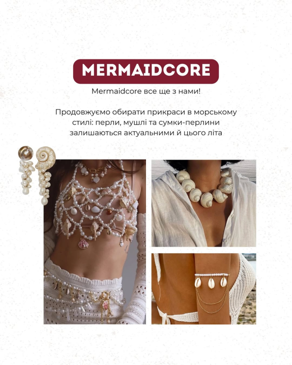 Продовжуємо обирати прикраси в морському стилі: перли, мушлі та сумки-перлини залишаються актуальними й цього літа.