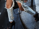 Серед світових модниць набирає популярність новий тренд - поєднання oversize-джинсів з колготами в сітку.