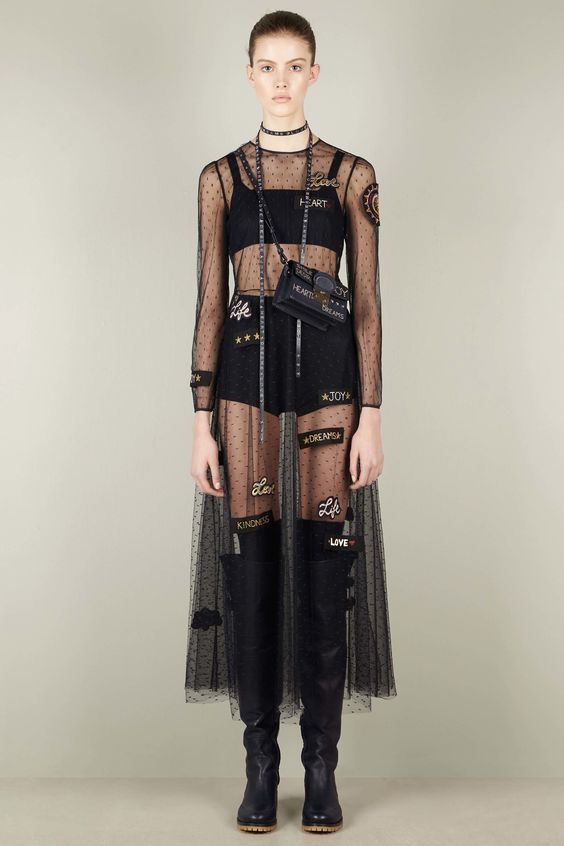 Прозорі сукні з тонкої сітки стали одним з головних трендів сезону весна-літо 2017. Перші варіанти представили дизайнери бренду Dior на Тижні моди. Під вбрання одягнули топи-бандо та шорти.