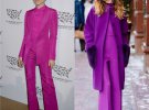 "Одягайте комплект в одному кольорі, а не просто в різних відтінках одного кольору. Так візуально ваша фігура зіллється в одну довгу лінію. Наприклад, ви одягаєте фіолетовий топ, і такі самі штані і туфлі. Це виглядає гармонійноі красиво. До того ж це дуже вдалий комплект для заходів і презентацій, тому що виглядає яскраво.