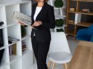 "Для мене діловий костюм - це щоденна річ, я одягаю його завжди і всюди. Це як форма для футболіста. У гардеробі у мене їх мінімум шість. Мені важливо, щоб він був зручним і статусним. Намагаюся одягати менше чорного кольору, але коли побачила в колекціях дизайнерів чорний костюм, то не змогла втриматися. Тепер розумію, що і чорний колір може виглядати досить незвично і нестандартно. Він робить дівчат більш елегантними", - коментує юрист Ірина Ярмольська.