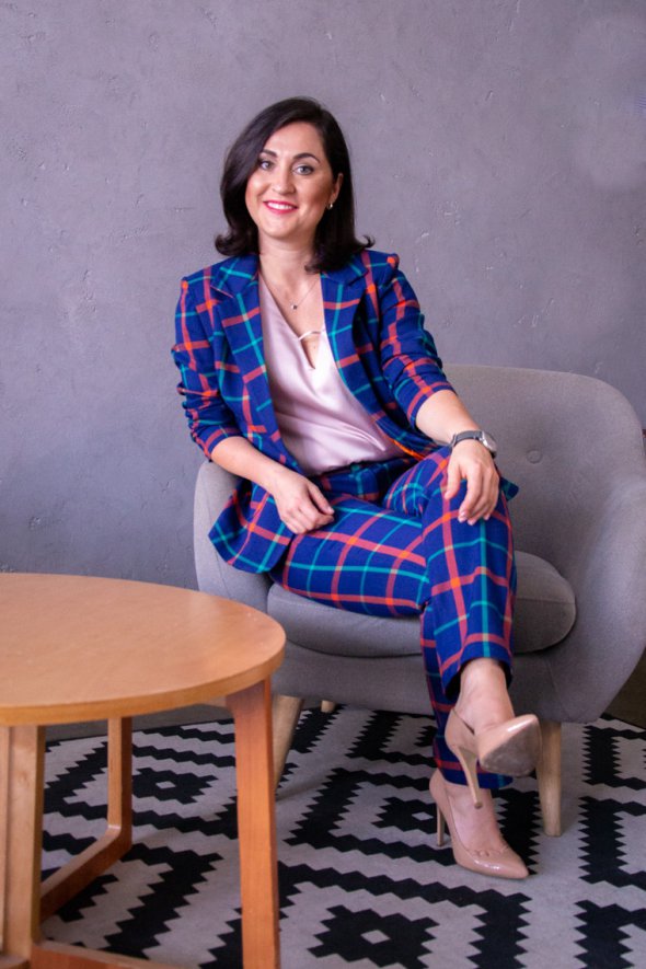 "Особисто для мене діловий костюм - це зручна річ. Адже я не люблю каблуки і намагаюся їх взагалі не носити. Для мене діловий костюм - це впевненість і комфорт. До цього часу практично не носила їх. Сьогодні дизайнери зробили костюми більш універсальними, тож підходять усім", - ділиться маркетолог Тетяна Кринична.