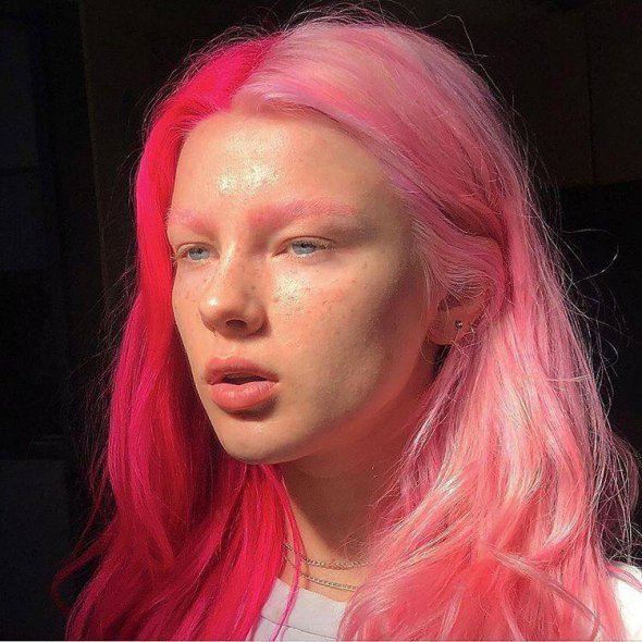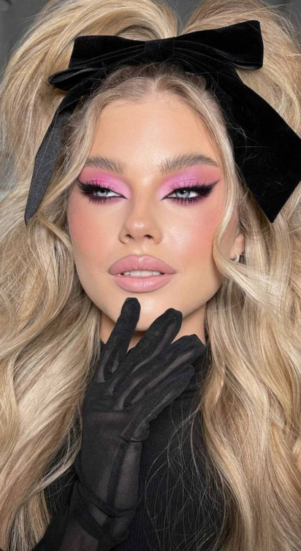 Рожевий мейк в одному стилі – тренд сезону. Використовується лише один тон рожевого на все обличчя: спочатку фарбують губи, а тоді пальцем розтушовують колір на повіках та щоках.