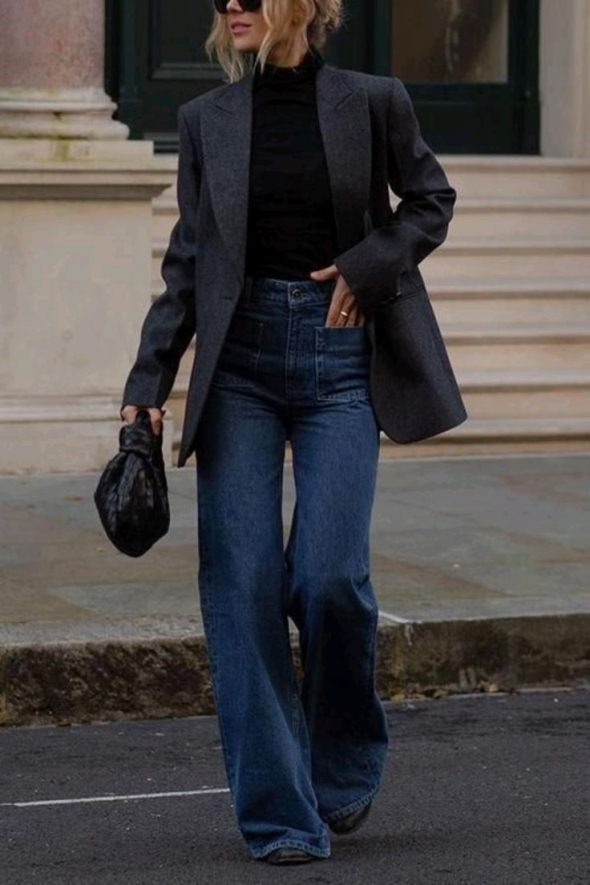 Ідеальна база на кожен день. Не варто купувати занадто обтислі штани. У цьому сезоні модним буде денім вільного крою. Жакет підійде для теплих днів, а от у холодний період - замініть його на тренч. Робіть ставку на низьке взуття. Наприклад, лофери, балетки або черевики.
