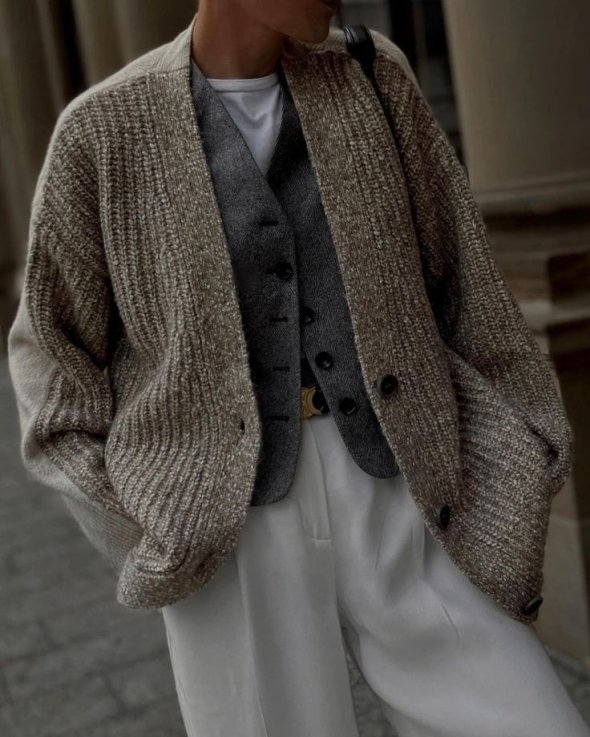 Подовжені светри створюють атмосферний образ. Придивіться до темних відтінків коричневого та бордового. Під них одягніть гольф або сорочку, в залежності від події.
