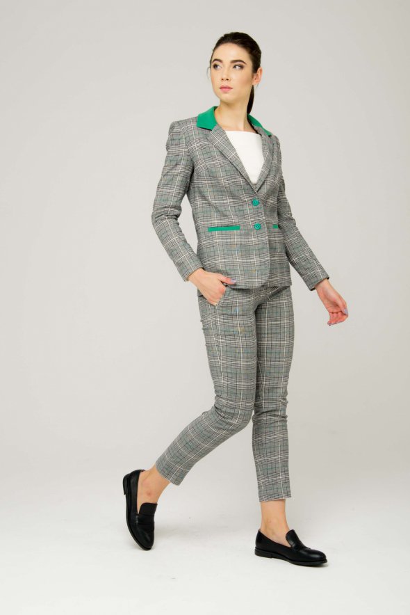 Must have офісного гардероба - це костюм. Він добре вписується в офіс, також його можна розбивати на різні наряди і комбінувати з іншими речами. Зараз дизайнери дуже багато експериментують з костюмами. Багато українських виробників роблять акцент на клітинку, але не на монохромну, а з вкрапленнями яскравих відтінків: ультрамарин, помаранчевий, гірчичний та інші.