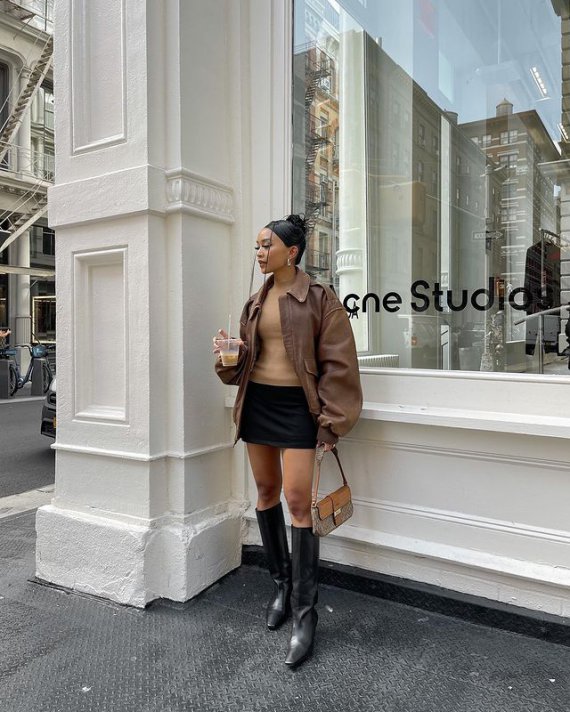 Однак варто вміти поєднувати ці чоботи. Зокрема, ця модель взуття класно поєднується з міні та оверсайзною шкіряною курткою. Це буде справжній баланс між витонченістю та контрастом.