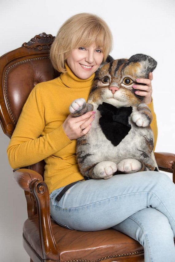 "Для виготовлення кота беру багато різновидів вовни. Спеціальна техніка, вовняна акварель, дає змогу досягти плавних переходів кольорів. Створюється ефект розмитості, як на картинах, які пишуть акварельними фарбами", – розповіла Наталія.