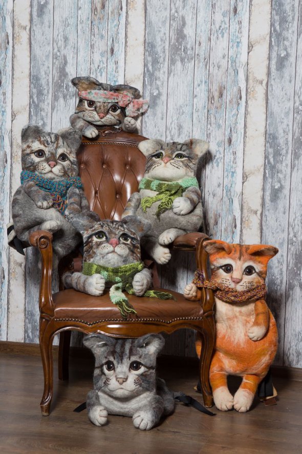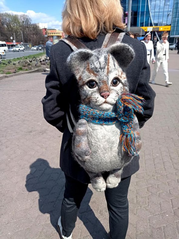"Коли створювала авторські ляльки, то для аксесуара спробувала зваляти невелику кульку з вовни. Мене цей процес настільки захопив, що захотілося вдосконалювати вміння. Спочатку займалася лише сухим валянням – робила іграшки. Потім спробувала мокре, яке дає можливість створювати великі речі. Для цього необхідні лише вовна, вода й золоті руки. У цій техніці створюю свої рюкзаки-коти",– розповіла Наталія Степанюк кореспонденту Gazeta.ua