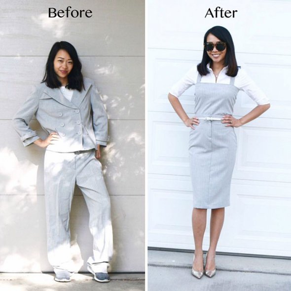 Мама трьох дітей Сара Тяу перероблює старий одяг у модні моделі. Почала робити це близько 10 років тому, коли народила першу доньку. Для створення стильних нарядів використовує від негабаритних сорочок до весільних суконь.