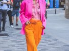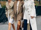 Вулична мода наповнена відтінками коричневого, білого, бежевого, чорного та ніжно-рожевого. Більшість модниць віддає перевагу спідницям довжини міді, брючним костюмам прямого крою, оверсайз жакетам.