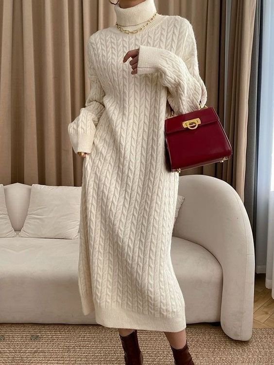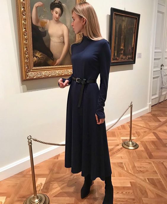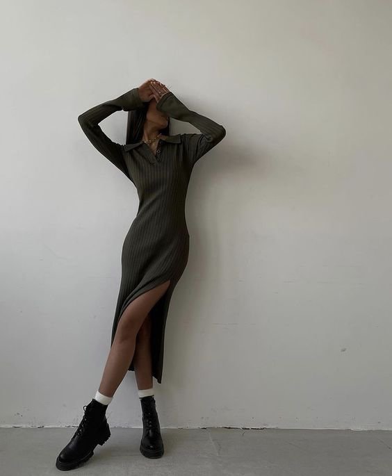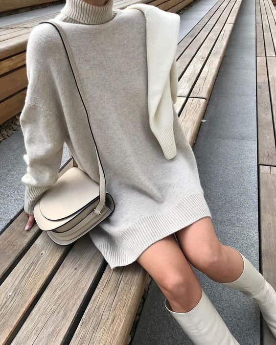 З приходом заморозків краще обирати сукні з щільних матеріалів. Поєднуйте їх з високими або низькими чоботами. З верхнього одягу робіть ставки на пальта, пуховики, екошуби.