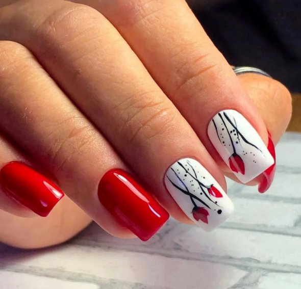 Такий манікюр стане знахідкою для тих, хто не уявляє весну без квітів. Не важливо, який колір лаку ви виберете за основу. На один-два нігті сміливо "садіть" улюблені рослини. Головне, не забувайте про мінімалізм.