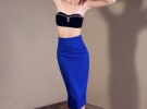 Фішкою колекції стали короткі оксамитові топи декоровані камінням. Дизайнер пропонує одягати їх під піджак та спідницю-олівець на високій талії.
