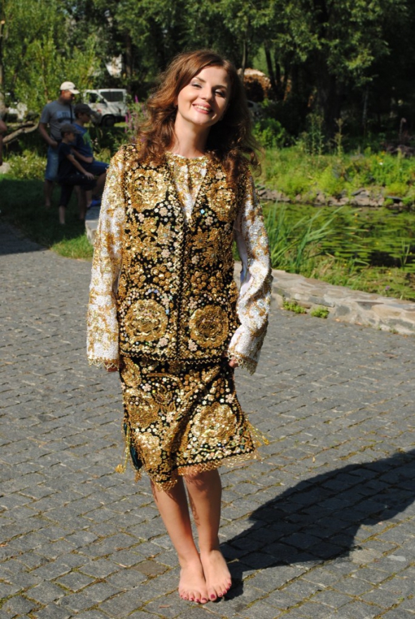 "Ми перестали помічати, якими сексуальними є у довгій сукні. Національний одяг не просто красива річ, а ще й оберіг. Жінка черпає енергію від землі саме у довгій сукні", - говорить Ольга, співробітниця замку. Власторуч шиє і вишиває собі одяг. Прийшла у довгій лляній сукні з вишитим поясом.