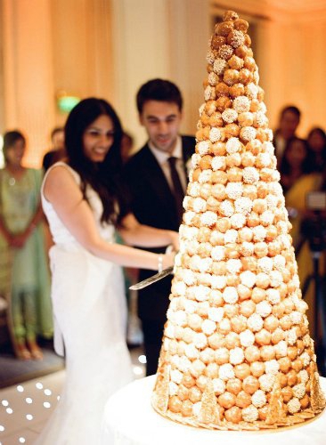 Макаруни та крокембуш. Весільна піраміда з французьких макарун або крокембуш є прекрасною альтернативою класичним торту. Крокембуш — це французький десерт, який представляє собою високий конус з профітролей з начинкою.