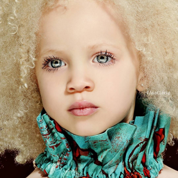 Ава Кларк - афроамериканка-альбінос. Світле волосся, зелено-блакитні очі та рожеві губи дівчинки підкорили світ моди. Позувала для обкладинок глянцевих журналів Vogue, Denim і VIP.