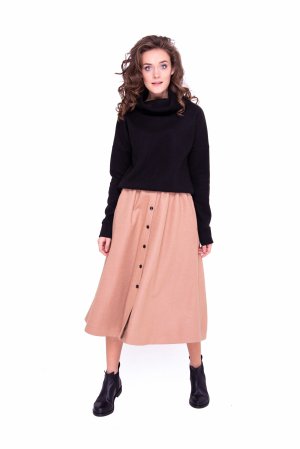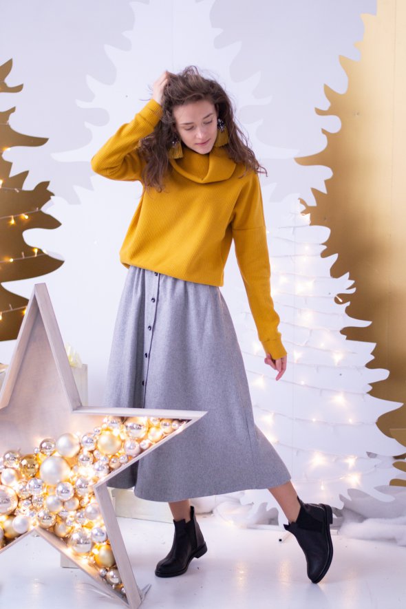 "На сьогодні найпопулярніший тандем в'язаного светра і вовняної спідниці-міді. Також чудовими варіаціями стануть в'язані светри і міні-спідниці. В тренді пастельні відтінки: беж, пудра, гірчичний, кремовий, шоколадний, а також монохромність образу", - діляться дизайнери.