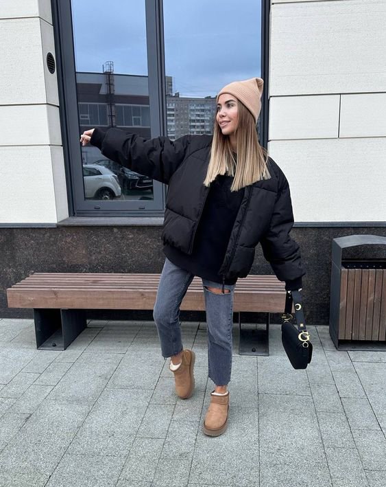 Поєднуйте угги зі шкірянками, бомберами, дублянками, пуховиками та шапками біні.
