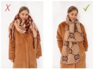 Якщо додаєте до образу шарф, то вдягайте його так, аби створити вертикаль. Так матимете гармонійний вигляд. Врівноважать силует прилеглі сапожки або ботфорти на підборах.