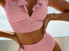 Замість застарілого варіанту обирайте купальник з воланами. Він візуально підкреслить груди.