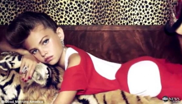 Кілька тижнів тому журнал "Воґ" надрукував фото моделі Тілейн Ліни-Рози Блондо. Лялькової зовнішності дівчинка з професійним макіяжем, у золотистій сукні, босоніжках-стілетто мала примголомшливо сексуальний вигляд. Але зверніть увагу — їй лише 10 років. В американських ЗМІ одразу почалася запекла суперечка — чи виправдано експлуатувати дитячу привабливість для суто дорослої теми.