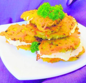 — Деруни готують із сиром. Його підсолюють і вимішують із дрібно насіченим свіжим кропом. На вилите на сковорідку тісто кладу начинку. Зверху прикриваю ще однією ложкою картопляного тіста, — розповідає киянин Олександр Мухоїд, 58 років. — Так мама на Поліссі робила, а там картопля і деруни найсмачніші в Україні.