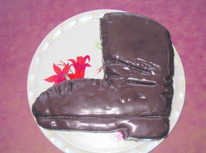 На 23 лютого спекла для чоловіка й сина торт у формі чобота. Залила шоколадною глазур'ю. На 8 Березня планує зробити бісквіт за тим самим рецептом, але у формі серця.