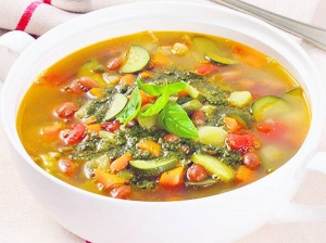 — Готовий суп можна присмачувати мілко посіченою свіжою зеленню. Літр мінестроне виходить із трьох склянок води та 600 грамів сирих овочів.