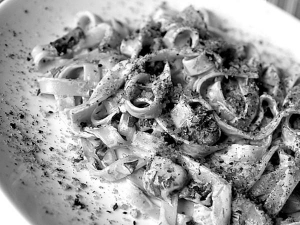 Грибним соусом присмачують локшину. Галина Кириченко спробувала страву, коли подорожувала Італією. Вона їй так сподобалось, що потім готувала її на знайомство з майбутніми сватами.