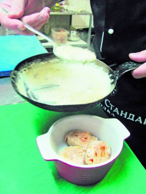 Три страви із туші кроля робить 22-річний Дмитро Панасюк, кухар столичного ресторану "Креп де Шин". Запікає його цілим, смажить котлети та тушкує стегна.