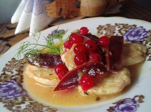 — Готувати птицю навчила свекруха. Живе в селі під Вінницею. Двічі на тиждень до неї приходять друзі. Щоразу треба пригощати чимось смачним. Торік сусід привіз з Угорщини кулінарну книгу. Там знайшла цей рецепт. Курка зі смородиною схожа на ресторанну. М'яка, соковита, з кислинкою.