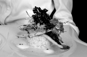 Шеф-кухар столичного ресторану "Лаченто" Анатолій Юшкевич, 33 роки, готує філе риби дорадо на ризотто з трюфелями.