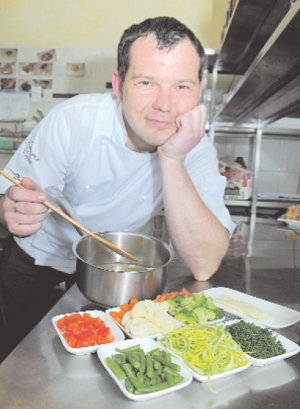 Шеф-кухар столичного ресторану "Панорама" Сергій Капуста, 32 роки, не солить суп у каструлі.