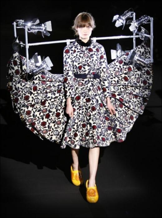 У останній колекції Віктора&Рольфа у ролі аксесуарів виступає металічна фототехніка.