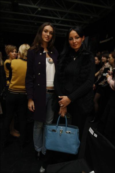 23-річна Інна Цимбалюк прийшла із подругою. Модель одягнута в чорні вузькі шкіряні штани та напівпрозору блузу.