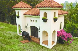 $30 тис. — це 838 тис. грн — коштує будка, яку новозеландська супермодель 48-річна Рейчел Хантер побудувала своєму псу. Вона подібна до маєтку голлівудської зірки. Це мініатюрна копія хасієнди — дому власниці в іспанському стилі, створена професійним дизайнером. Дах укритий черепицею, на дверях — вишукана різьба, на підвіконні висять горщики з квітами.