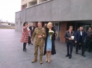 На церемонію розпису наречений одягнув військовий однострій. Наречена — коротку блакитну сукню із мереживом, замість фати — діадема. На весілля приїхали найближчі друзі та рідня. Перед святкуванням відвідали на цвинтарі у Збаражі загиблого на Майдані сотника — Устима Голоднюка.